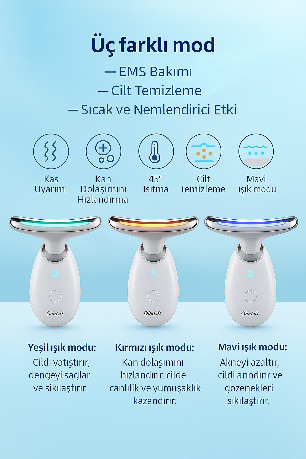 Evet, tamamen sağlıklıdır 🌿 Cilt dostu malzemelerden üretilmiştir ve düşük frekanslı EMS mikro akımlar cilde zarar vermez — aksine dolaşımı artırarak cilt yenilenmesini destekler.